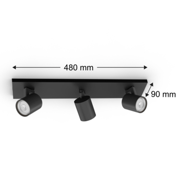 Support 3 spots Philips myLiving Runner noir 3x GU10