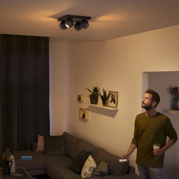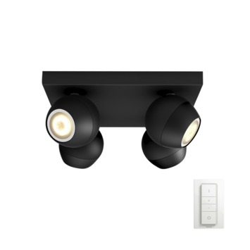 Les spots Philips Hue White Ambiance Buckram sont fournis avec un interrupteur avec variateur sans fil et une ampoule LED GU10 White Ambiance, pour vous aider à vous reposer, à lire, à vous concentrer ou à vous ressourcer. Profitez d'une lumière blanche naturelle qui s'adapte à vos gestes quotidiens.