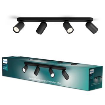 Support 4 spots Led Philips MyLiving Pongee noir 4 x 5,5W