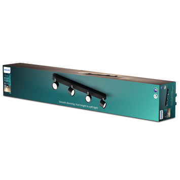 Lorsque vous avez envie d'adapter l'ambiance à votre activité, ce support 4 spots LED Star de Philips noir à intensité variable vous permet de réduire la luminosité en douceur jusqu'au bon niveau, de la luminosité puissante pour les tâches quotidiennes à la lumière tamisée pour un moment de détente.