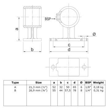 Support balustrade pour tube Ø 27 mm9.79