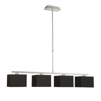 Le plafonnier Philips myLiving Ely, avec ses 4 points lumineux, assure un éclairage équilibré. Ses 4 ampoules halogènes de 42 W sont dimmables. La finition épurée en textile noir des 4 abat-jour rehausse de son élégance votre espace de vie. La lampe se règle en outre facilement en hauteur.