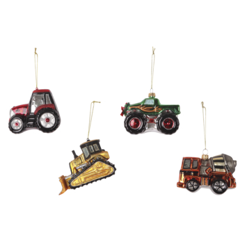 Donnez à votre sapin de Noël une allure originale avec les décorations en verre de Christmas Goods, représentant des véhicules de chantier, vendus à l'unité. La collection contient quatre véhicules en verre différents, comme un tracteur, un camion de ciment et une bulldozer. Étant disponibles à l'unité, vous pouvez choisir exactement les modèles qui complètent votre décoration de Noël.
