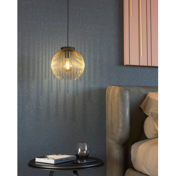 La suspension Venezuela se compose d'un abat-jour en fil doré suspendu par un câble textile noir à une coupole en métal noir. L'abat-jour en fil enveloppe la lampe à l'intérieur avec sa rondeur harmonieuse, créant un jeu fascinant de lumière et d'ombre une fois l'ensemble allumé. Cette suspension apporte la touche finale à un intérieur moderne et offre un éclairage élégant dans le salon ou la salle à manger au-dessus de la table. La source lumineuse illustrée n'est pas incluse. La lampe est compatible avec toutes les ampoules E27.