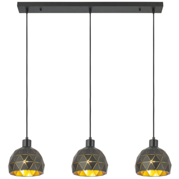 Bien alignés, les 3 points lumineux de la suspension Niels éclairent la table, la buffet ou même le corridor. L'intérieur doré des demi-boules à facettes noires reflète joliment la lumière. Mettez des ampoules de max. 60 watts dans les culots E27, vous aurez bien le choix, c'est une taille de culot courante. Le luminaire est livré sans ampoules.