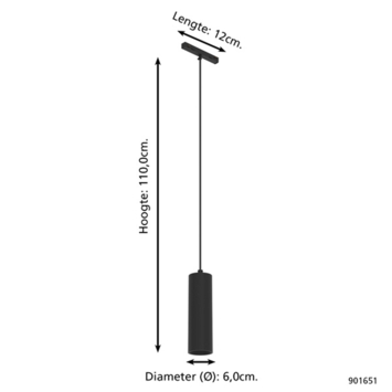 Le luminaire dispose d'un boîtier en plastique, est de couleur noire et a un indice de protection IP20. Le modèle est destiné à une utilisation intérieure et est commandé via un interrupteur mural. L'ampoule n'est pas incluse (max. 10 W) et le luminaire n'est pas dimmable. Dans le système de rails, le luminaire suspendu peut être placé de manière flexible afin de pouvoir orienter l'éclairage selon l'aménagement souhaité.
