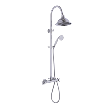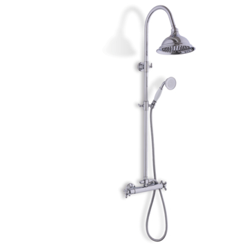 Le système de douche à effet pluie Atlantic Brunswick comprend une douchette à main réglable en hauteur, une douche fixe et une large douche à effet pluie de 208 mm. La douche pluie fixe a un design classique.