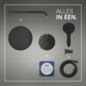 Avec le système de douche encastré Grohe Precision rond noir mat (Matte Black), vous pouvez créer une douche durable dotée de fonctions utiles en un rien de temps. Cet ensemble tout-en-un offre confort, qualité et facilité d'utilisation ultime. Grohe TurboStat et Grohe assurent un jet d'eau constant et une température parfaite de 38°C. Grâce à la technologie Grohe Water Saving, vous pouvez économiser sans effort sur votre consommation d'eau et d'énergie sans sacrifier la qualité. Avec le pratique Grohe AquaDimmer, vous pouvez régler sans effort le débit d'eau et basculer en douceur entre la douche de tête et la douchette à main. La douche de tête a une taille généreuse de 250 mm et offre un jet Rain doux et relaxant. La douchette à main de 110 mm délivre le puissant jet Jet et le doux jet Rain que vous pouvez régler à votre guise grâce au cadran Grohe SmartSwitch. L'entretien est facile grâce à l'anticalcaire SpeedClean et à la finition Grohe Long-Life anti-rayures qui donne à l'ensemble de douche un bel éclat miroir longue durée. Grâce à l'installation facile à l'aide de Grohe FastFixation, vous pouvez installer le système intégré Grohe Precision rond Matte Black rapidement et de manière étanche.