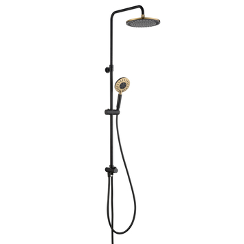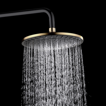 Hele mooie stoere doucheset met een heerlijke regendouche. De combinatie zwart met messing is erg mooi.