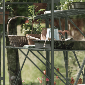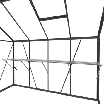 Une table de culture ou table de rempotage offre un espace de travail surélevé dans votre serre, idéal pour les semis, le rempotage ou l’arrosage. Elle permet également de ranger les matériaux fréquemment utilisés. La structure comprend 4 étagères, des supports et des entretoises. La connexion au cadre de la serre est assurée par des boulons et écrous (à tête marteau) de taille standard M6, garantissant une fixation solide. La hauteur est ajustable pour une position de travail ergonomique, vous permettant de semer et cultiver à votre hauteur préférée. Avec une profondeur de 42,5 cm, la table de culture peut s’adapter à toutes les tailles de serre, optimisant ainsi l’espace intérieur