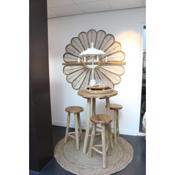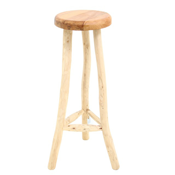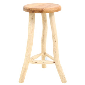 Goeie stevige barkruk van dik teak hout en niet te lomp.