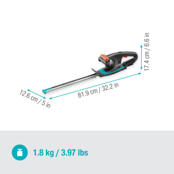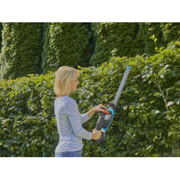 Avec le taille-haie sans fil extra léger et maniable EasyCut 40/18V P4A solo de GARDENA, vous pouvez parfaitement tailler vos petites et moyennes haies. Le faible poids de seulement 1,9 kg sans batterie facilite la taille. La poignée ErgoTec avec interrupteur intégré garantit que le taille-haie repose de manière ergonomique et sûre dans vos mains, quelle que soit la position dans laquelle vous l'utilisez. La longueur des feuilles est de 40 cm. Grâce aux lames rectifiées découpées au laser, vous pouvez effectuer des coupes puissantes, précises et rapides avec peu d'effort et sans interruption. Lorsque vous coupez près du sol ou des murs, les lames du taille-haie sont protégées par la protection contre les chocs à la pointe de la lame de scie. Vous pouvez toujours voir l'état de charge de la batterie sur l'affichage LED intégré dans la poignée. La batterie se charge rapidement et a une longue durée de vie. Le taille-haie sans fil GARDENA EasyCut 40/18V P4A solo est fourni sans chargeur ni batterie. Vous pouvez utiliser une batterie 18V de la POWER FOR ALL ALLIANCE. L'ALLIANCE POWER FOR ALL est l'une des plus grandes alliances de batteries intermarques des principaux fabricants, dont les batteries peuvent être utilisées dans de nombreux appareils de la maison et du jardin. De cette façon, vous économisez de l'argent tout en restant flexible ! Vous préférez acheter le produit avec le système de batterie ? Pas de problème, alors le set prêt à l'emploi (art. n° 14733-20) est fait pour vous. Après une simple inscription en ligne, GARDENA offre une garantie fabricant de 3 ans sur le taille-haie sans fil. La passion propulsée par GARDENA. UN SEUL système de batterie pour toutes les tâches dans votre jardin