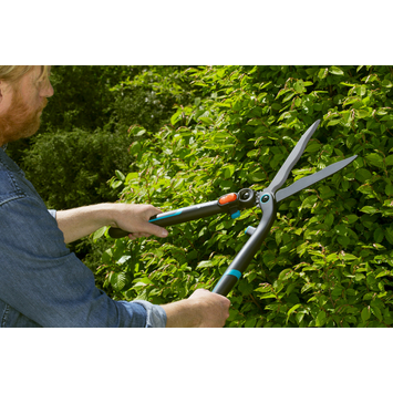 Le taille-haie 2 en 1 EnergyCut de Gardena impressionne par son engrenage en deux parties, son design moderne, son excellente puissance de coupe, sa forme ergonomique et son faible poids. Les lames robustes et dentelées, les poignées en plastique de forme ergonomique et un angle de travail parfait de 20° assurent une position de travail particulièrement confortable. Le taille-bordures intégré permet de couper facilement des branches plus épaisses. Les tampons d'arrêt intégrés protègent les poignets. Le matériau du manche, comme tous les autres éléments du taille-haie 2en1 EnergyCut, est particulièrement stable et durable. La longueur totale du taille-haie est de 60 cm.