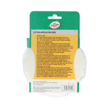 Le tampon de nettoyage en coton Turtle Wax est un tampon de nettoyage en coton éponge doux et idéal pour nettoyer et restaurer les surfaces en plastique et en cuir avec des produits chimiques. Le tampon de polissage en coton Turtle Wax convient également au polissage et au cirage des peintures. L'insert manuel fonctionne de manière fluide et confortable et permet un contact encore meilleur entre la main et la surface, permettant ainsi un nettoyage encore plus approfondi de la surface.