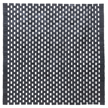 Pas Woodstock mais Woodblock. Comme dans les années 60, ce tapis de bain joue avec l'utilisation des motifs. Un look vintage grâce à l'utilisation du teck mais avec une finition noire luxueuse. Également disponible en 52x90 cm.