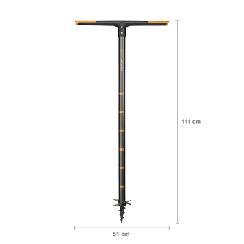 La tarière à main Fiskars QuikDrill™ facilite de nombreuses tâches dans le jardin. C'est un outil pratique pour planter des fleurs, des arbustes et pour aérer et fertiliser le sol. Les deux lames assurent un trou propre sans cailloux ni racines. La poignée durable et renforcée de fibre de verre rend le travail agréable et ergonomique avec cette tarière. La tarière à main QuikDrill est fabriquée en acier de haute qualité et est donc particulièrement stable et durable. Cette tarière convient aux trous d'un diamètre de 100 mm. Également disponible dans d'autres dimensions.