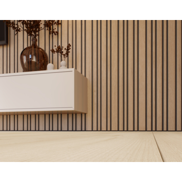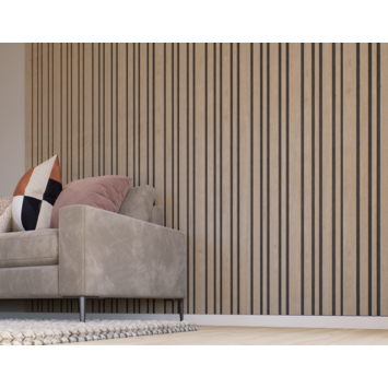 Grâce au dos en feutre, ces tasseaux contribuent non seulement à rendre vos intérieurs plus chaleureux mais optimisent en même temps leur acoustique. De plus, ils contribuent à un climat intérieur plus sain, résultant en un cadre de vie plus harmonieux et apaisant. Dans un souci de durabilité, le feutre est fabriqué à partir de bouteilles PET recyclées et le bois (enrobé de film décoratif) est issu de forêts gérées de façon durable.