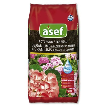 Le terreau (40 litres) d’Asef convient parfaitement pour les géraniums et les plantes fleuries. Grâce à la technologie Water Smart, vous devez arroser vos plantes moins souvent. Coll, pas vrai ?