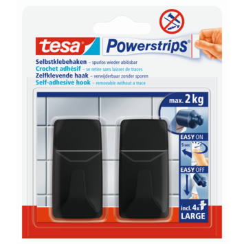 Les crochets auto-adhésifs tesa Powerstrips® Large rectangulaires constituent une alternative intelligente au crochet traditionnel fixé avec des vis. Lors de la fixation, vous n'avez pas besoin de perceuse et il n’est pas nécessaire d’endommager la surface*. Comme les crochets sont suffisamment solides pour supporter un poids maximal de 2 kg, ils peuvent trouver de nombreuses utilisations au sein du foyer. Par exemple, ils peuvent servir de crochets de cuisine, de crochets à clés ou de crochets de salle de bain. Après utilisation, les crochets en plastique de haute qualité peuvent être retirés sans effort et sans aucun résidu et être réutilisés avec un nouveau Powerstrip® Large. Les crochets sont disponibles en blanc et en noir mat.