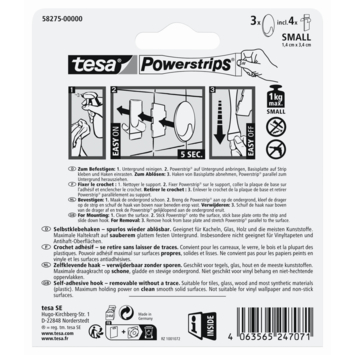 Les crochets auto-adhésifs tesa Powerstrips® Small ovales constituent une alternative intelligente au crochet traditionnel fixé avec des vis. Lors de la fixation, vous n'avez pas besoin de perceuse et il n’est pas nécessaire d’endommager la surface*. Comme les crochets sont suffisamment solides pour supporter un poids maximal de 1 kg, ils peuvent trouver de nombreuses utilisations au sein du foyer. Leur design ovale attrayant en fait des crochets pratiques pour la cuisine ou la salle de bain, mais ils apportent également une touche de design pour les chambres d'enfants et le bureau à domicile.