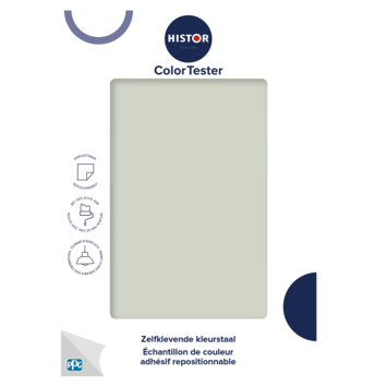 Avec l'échantillon Histor, vous pouvez facilement tester votre couleur chez vous. L'échantillon adhésif repositionnable est fabriqué à 100% avec de la peinture véritable.