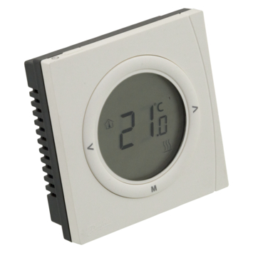 Le Danfoss Thermostat numérique,type TP5001, est un thermostat d'ambiance électronique où vous pouvez régler la température à l'aide de l'anneau de réglage autour de l'écran LCD. Avec ce thermostat moderne d'entrée de gamme, vous pouvez facilement contrôler la température de votre pièce. Cet appareil dispose d'une fonction de protection contre le gel et d'un mode vacances. Le mode vacances avec abaissement de la température permet d'économiser de l'énergie lorsque vous n'êtes pas chez vous.