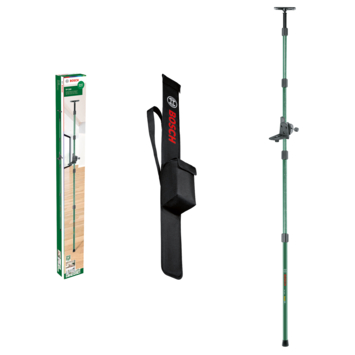 La tige télescopique Bosch TP 320 permet de positionner facilement et rapidement des lasers lignes à n’importe quelle hauteur. Avec sa très grande plage de travail de 0,1 m à 3,20 m, elle permet de positionner des lasers lignes à n’importe quelle hauteur, même près des sols et plafonds. Elle est constituée de 4 sections télescopiques à système de verrouillage par rotation (Twist Lock) assurant une mise en place facile et dispose de deux supports (pour l’instrument et le montage) garantissant une polyvalence maximale. La plaque de plafond montée sur ressort permet un maintien stable sous n’importe quel angle. Sa faible longueur une fois repliée et sa housse de transport très pratique assurent un transport facile et un rangement compact. Elle accepte tous les lasers lignes avec filetage ¼".