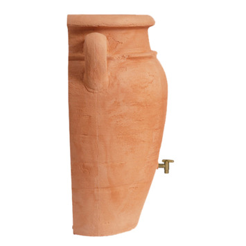 Que diriez-vous d'un tonneau de pluie en forme d'amphore antique à placer contre le mur - et gagner ainsi de la place ? Celui-ci peut contenir 260 litres et dispose d'un robinet pratique. Il est en plastique durable de couleur terre cuite. Disponible également en couleur sable.