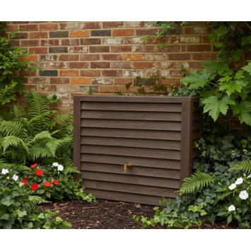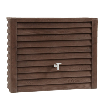 Envie d’un tonneau de pluie au cachet empreint de charme ? Achetez ce tonneau de pluie Garantia Woody brun foncé de 350 L. Cette citerne classique se fixe aisément sur une descente d’eau pour collecter automatiquement la pluie à chaque averse. Très compacte, elle se place aisément contre un mur. Le tonneau est vendu avec un robinet que vous pouvez aussi raccorder à un tuyau d’arrosage. Cet élégant tonneau brun foncé compact, d’aspect bois, mesure 124 cm de large, à peine 40 cm de profondeur, 100 cm de haut et a une contenance de pas moins de 350 litres. Son matériau est quasi indestructible. Le gel, la pluie et les intempéries de toutes sortes n’ont aucune incidence sur ce tonneau de pluie. Il faut juste le vider en cas de gel.