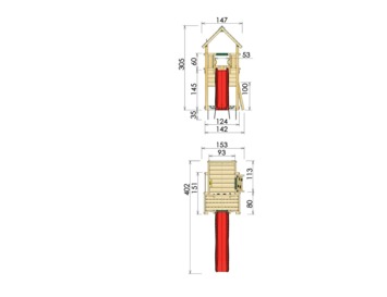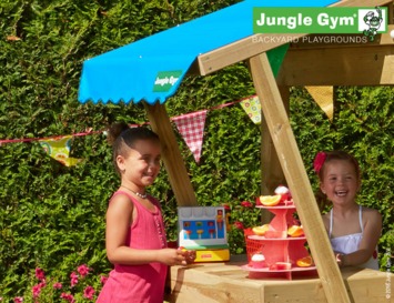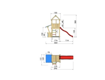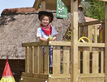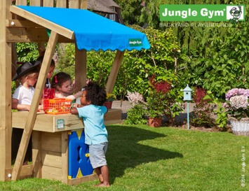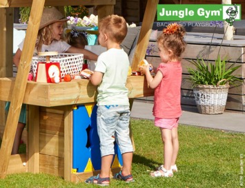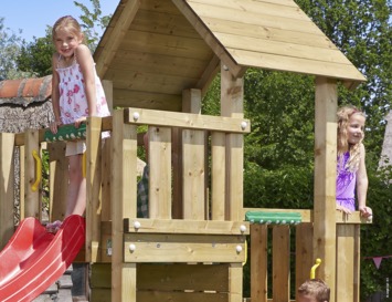 Une maison de jeu classique avec certain cachet. Toit en bois intemporel, deux plates-formes, gouvernail, mur d'escalade avec des pierres d'escalade colorées, toboggan long avec raccordement d'eau en option et bac à sable. Astuce : Jungle Cubby est également disponible avec différentes extensions telles qu’un train, une cage à poules ou une balançoire, ....