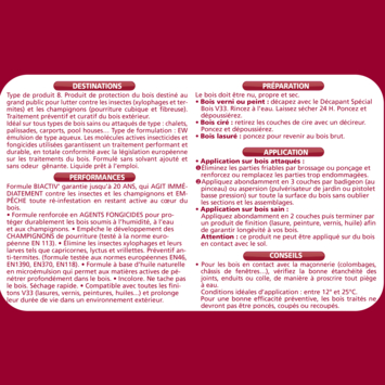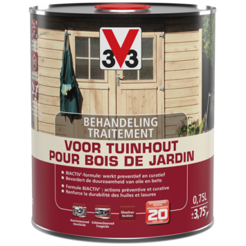 Protégez votre bois contre les insectes et les champigons avec V33. Ce produit de protection est facile à utiliser tant à titre préventif que curatif. Disponible en deux volumes, dont 0,75 litre.
