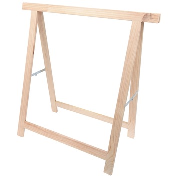 Ce tréteau en bois s’utilisera pour divers travaux de bricolage. Il permet de supporter des planches, plinthes et portes pendant leur mise en peinture. Il suffit de poser un panneau de bois sur une paire de tréteaux pour disposer d’une table de travail bien pratique pour divers travaux, par exemple pour tapisser vos murs. Le tréteau est repliable et prend un minimum de place une fois rangé. Ses dimensions sont de 74 cm sur 74 cm.