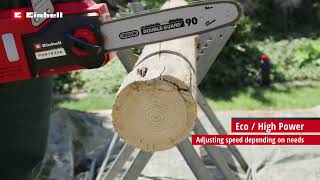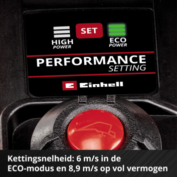 - Vitesse de chaîne réglable : choix entre pleine puissance (8 m/s) et mode Eco (6 m/s) pour une autonomie prolongée de la batterie