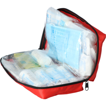 4 pansements adhésifs 2,5 x 7,2 cm, 2 pansements adhésifs protection des doigts 12 x 2 cm, 2 pansements adhésifs extrémités des doigts, 1 rouleau de sparadrap 5 m x 2,5 cm, 3 bandes élastiques 8 cm x 4 cm, 2 bandes élastiques 6 cm x 4 cm, 1 compresse stérile spéciale brûlure 60 x 80 cm, 1 compresse stérile spéciale brûlure 40 x 60 cm, 1 pansement compressif stérile 6 x 8 cm, 2 pansements compressif stérile 10 x 8 cm, 1 pansement compressif stérile 10 x 12 cm, 1 couverture thermique 210 x 160 cm, 1 guide de premiers secours.