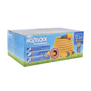 Wonderhoze est un tuyau d’arrosage léger et extensible, doté d’une couche extérieure en tissu doux. Vous pouvez l’étirer jusqu’à trois fois sa longueur initiale, puis il se rétrécit automatiquement jusqu'à sa taille d'origine après usage. Les deux extrémités sont équipées d’un raccord avec arrêt d’eau, ce qui maintient une pression constante dans le tuyau et évite qu’il ne se rétracte pendant l’utilisation.