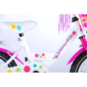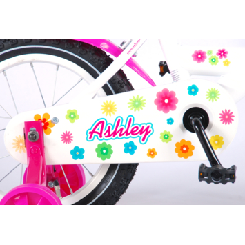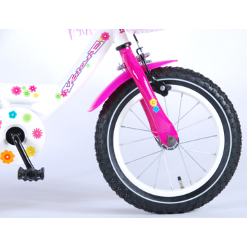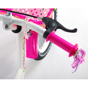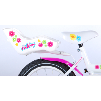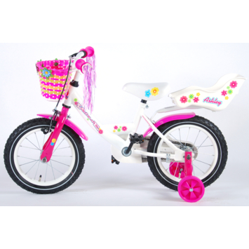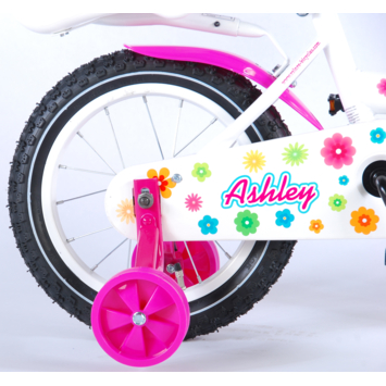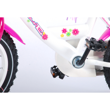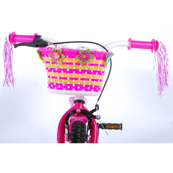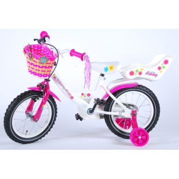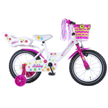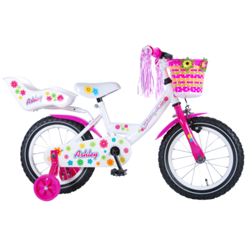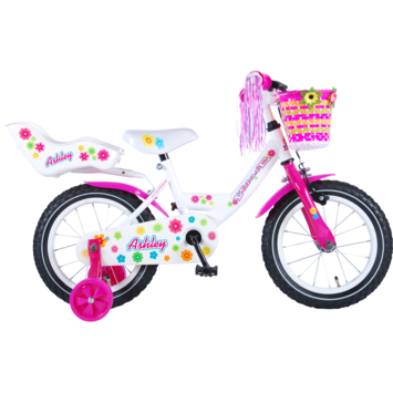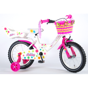 Vélo fille Volare Ashley 14 pouces. Les vélos Volare Ashley conviennent à toutes les femmes brillantes. Le cadre du vélo et le panier en plastique pratique ont un beau motif floral. Le vélo est équipé de roues d'entraînement facilement amovibles pour apprendre rapidement à faire du vélo, d'un frein à main robuste et d'un frein à pédale arrière. De plus, le vélo est équipé d'un siège de poupée, afin que chaque femme puisse transporter sa poupée en toute sécurité et garder ses mains sur le guidon. Un top bike à petit prix ! Ce vélo est assemblé à 95%, donc presque prêt à rouler. Si facile!