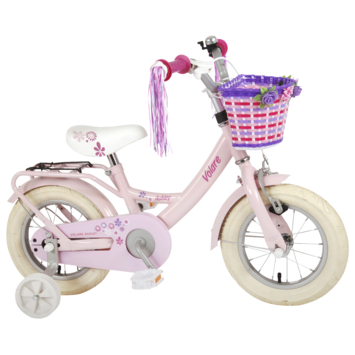 Vélo Volare Ashley 12 pouces pour filles. Ce magnifique vélo Volare Ashley est le vélo que toutes les filles veulent avoir. Le porte-bagages arrière est intégré au cadre, donnant au vélo un look élégant et moderne. Tous les objets importants peuvent être emportés avec vous sur ce porte-bagages arrière et dans le panier à vélo, afin que votre enfant puisse garder ses mains sur le guidon en toute sécurité. La vitesse peut être réduite avec le frein à main et le frein à rétropédalage. La selle et les poignées souples offrent un confort supplémentaire et le garde-chaîne est fermé pour protéger les petits doigts. Avec la sonnette de vélo, vous pouvez faire savoir à tout le monde que vous arrivez au coin de la rue. Les roues latérales amovibles font de ce vélo un vélo idéal pour apprendre à faire du vélo vite et bien. Les pneus pneumatiques de 12 pouces de ce vélo Volare Ashley garantissent que le vélo convient aux filles entre 3 et 4,5 ans avec des vêtements de taille 92-104. De plus, le vélo est assemblé à 95 %, donc presque prêt pour le cyclisme. Si facile!