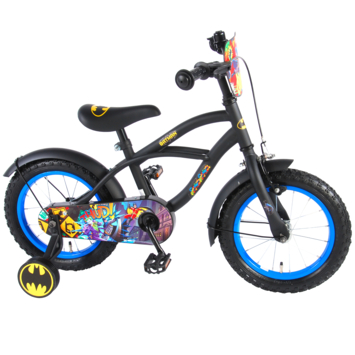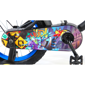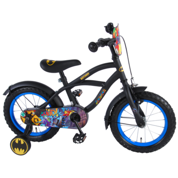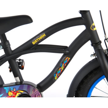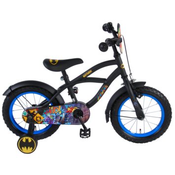 Volare a conçu un vélo dans le style de Batman spécialement pour tous les fans de ce super-héros. Le vélo a un cadre noir cool avec des autocollants Batman. Le garde-chaîne est complètement fermé et a également une impression cool. Pour apprendre à faire du vélo rapidement, le vélo est équipé de roues stabilisatrices. De plus, le vélo est équipé d'une sonnette et d'un frein à main et d'un frein à rétropédalage.