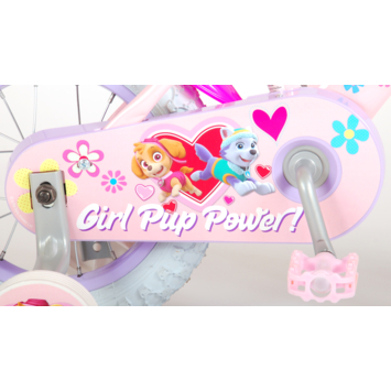 Paw Patrol 12 pouces rose. Paw Patrol est une série télévisée très populaire auprès de tous les enfants. Le vélo Paw Patrol est vraiment un gagnant. Le vélo a un cadre super sympa, cool et moderne et est équipé d'un frein à main et d'un frein à rétropédalage et d'un siège de poupée. Le garde-chaîne est fermé pour protéger les petits doigts. Le vélo est également équipé de roues latérales amovibles robustes pour apprendre rapidement à faire du vélo. Vroommm, voilà !