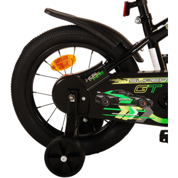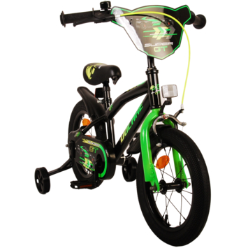 Entrez dans le monde du cyclisme d'aventure avec le vélo pour enfant Volare Super GT 14 pouces, disponible chez GAMMA ! La sécurité passe avant tout avec un frein à main, un frein à rétropédalage, un protège-chaîne fermé et des roues d'entraînement amovibles. Ce vélo cool est équipé de réflecteurs dans les roues et à l'avant et à l'arrière du vélo, ainsi que d'une jolie sonnette. Profitez du confort de la selle moelleuse, du design intemporel et du cadre unique aux accents verts. Doté d'une selle et d'un guidon réglables, ce vélo grandit avec votre enfant, vous pourrez donc vivre de nombreuses aventures avec lui. Le matériel de montage est inclus pour une installation facile !