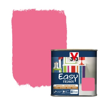 La peinture pour l'intérieur Easy Fashion de V33 est votre alliée idéale pour la décoration ou la rénovation de surfaces en bois, comme vos chambranles, meubles, cadres, etc. Ce vernis satiné de couleur rose fluo (500 ml) adhère aux surfaces traitées ou non traitées. Cerise sur le gâteau : Easy Fashion est facile à appliquer, ce qui vous évite le décapage et le ponçage. Cette peinture résiste même à l'eau, aux taches, aux rayures, et aux chocs. Disponible en d'autres couleurs.