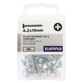 Avec les outils autotaraudeurs Gamma, vous pouvez facilement fixer des matériaux en feuilles et des panneaux en plastique au bois. Un outil autotaraudeur coupe son propre filetage au fur et à mesure qu'il est vissé. Cet outil autotaraudeur zingué 4,2X19 est doté d'une culasse pour un montage facile. Les vis autotaraudeuses sont également appelées vis de corps et vis taraudeuses de corps.