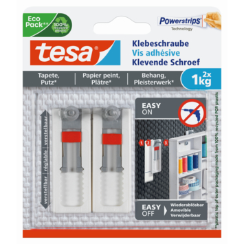 Vis adhésive réglable Tesa pour surfaces fragiles max. 1 kg blanc 2 pièces19.47