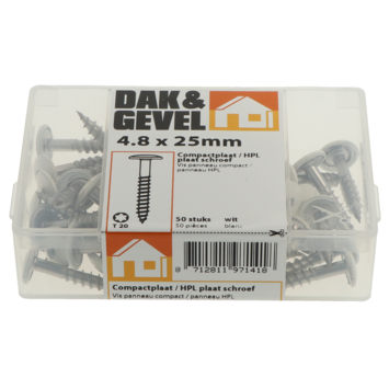 Vis panneau compact/HPL T20 4,8x25 mm blanc 50 pièces