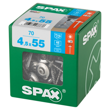 La vis à une tête Spax T-STAR plus à intérieur à six pans. Cette forme augmente la surface de contact au niveau du T-STAR plus. Les embouts T-STAR plus ont un ajustement optimal dans la tête de vis. Le transfert de force optimal d'une visseuse sans fil sur la vis grâce au T-STAR plus permet un travail fluide, et est beaucoup plus efficace que toutes les autres transmissions. Là où la vis à tête fraisée est adaptée pour un affleurement complet de la surface de la vis, la tête lens fraisée offre un renflement convexe. Selon le type de vis et la nature de la surface (acier inoxydable, nickelé, ancien), ces vis sont utilisées comme élément décoratif, par exemple dans la fabrication de meubles ou pour fixer des plinthes.