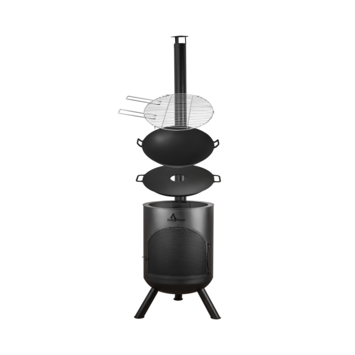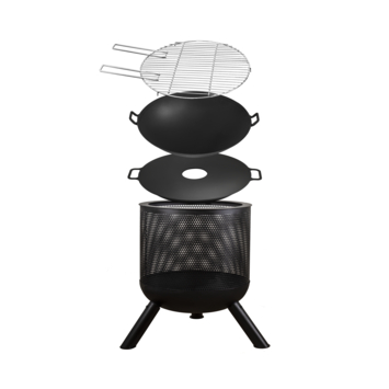 Transformez votre foyer de terrasse ou foyer Jada en un barbecue multifonctionnel. Utilisez les accessoires de barbecue Livn à ces fins. En plus de la poêle wok de 45 cm de diamètre, la série Jada dispose également d'une grille de barbecue et d'une plaque de gril.