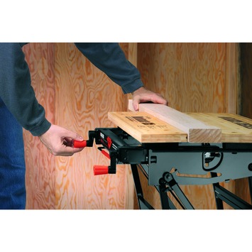 Le Black+Decker Workmate WM825 est un établi pliable avec deux hauteurs différentes : 620 et 800 mm. Vous pouvez utiliser cet établi pour fixer des outils ou comme chevalet, étau et chevalet. L'établi dispose d'un système exclusif de serrage à une main qui vous permet de régler les planches de serrage simultanément ou séparément. La planche de serrage arrière peut être ajustée en 3 positions. L'établi a une portée de 541 mm et une base en acier d'une capacité de charge de 250 kg. Les arbres à double serrage offrent une force de serrage et une polyvalence supplémentaires. Enfin, les supports en caoutchouc procurent un effet antidérapant.