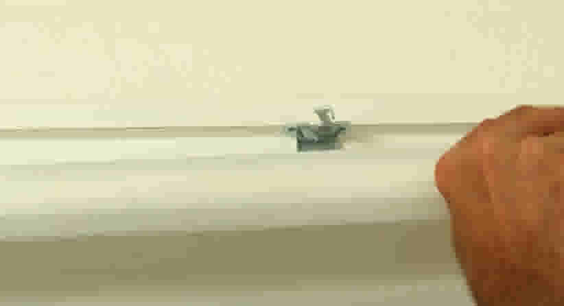 Insérez la barre supérieure du store dans les supports, et refermez les petites attaches de sécurité.