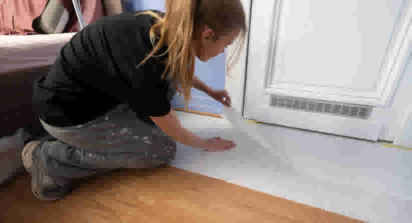 La peinture s’applique toujours sur une surface propre. Donc, munissez-vous d’un seau rempli d’eau chaude additionnée d’un peu de produit de nettoyage, et frottez !