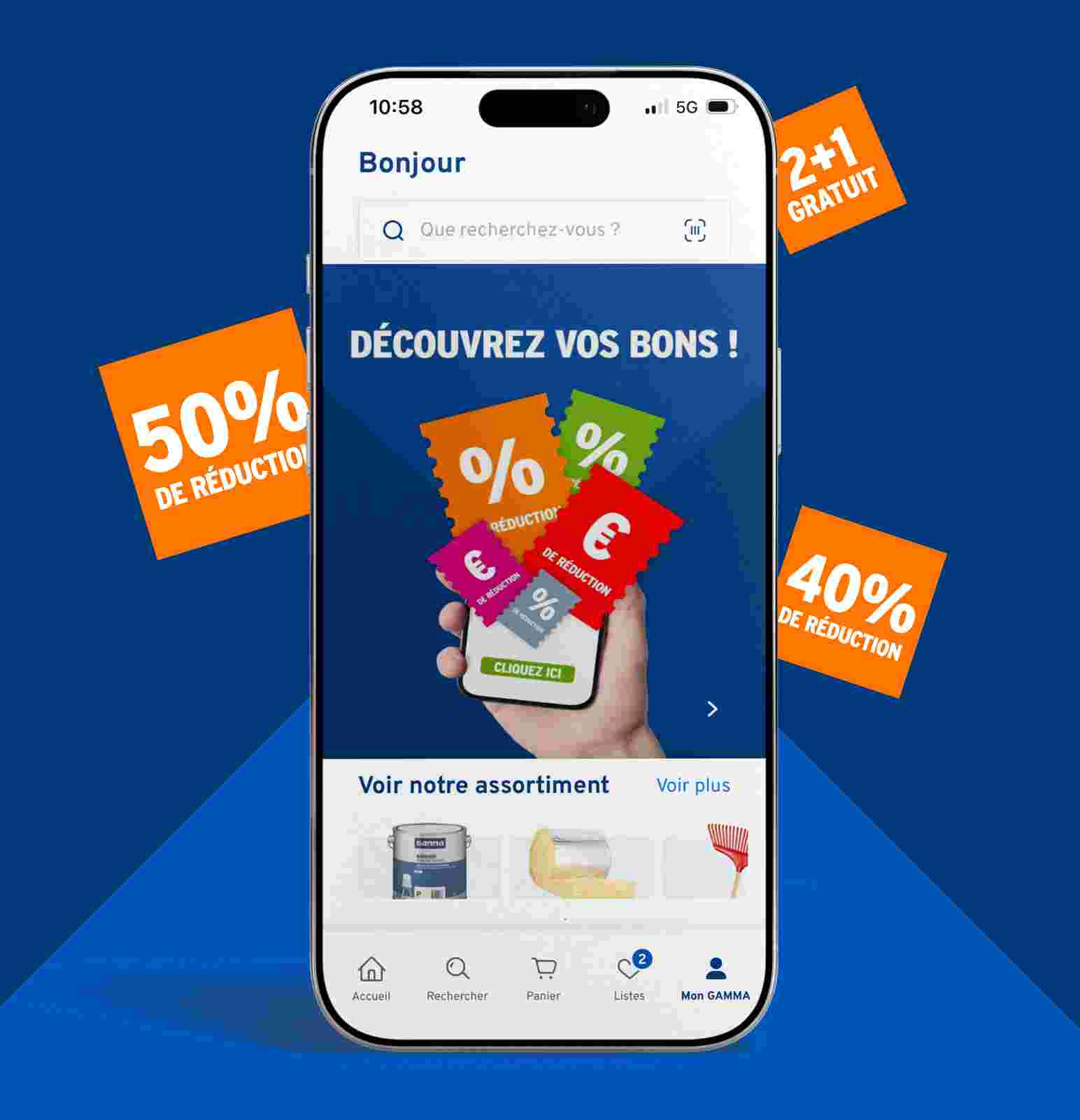 Toutes vos réductions réunies dans l’appli GAMMA.